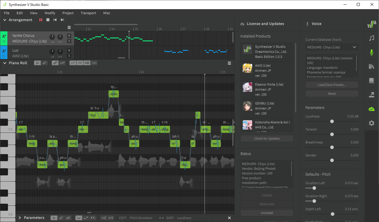 - Synthesizer V Engine version unknown, but likely to be at least 2.0.0.